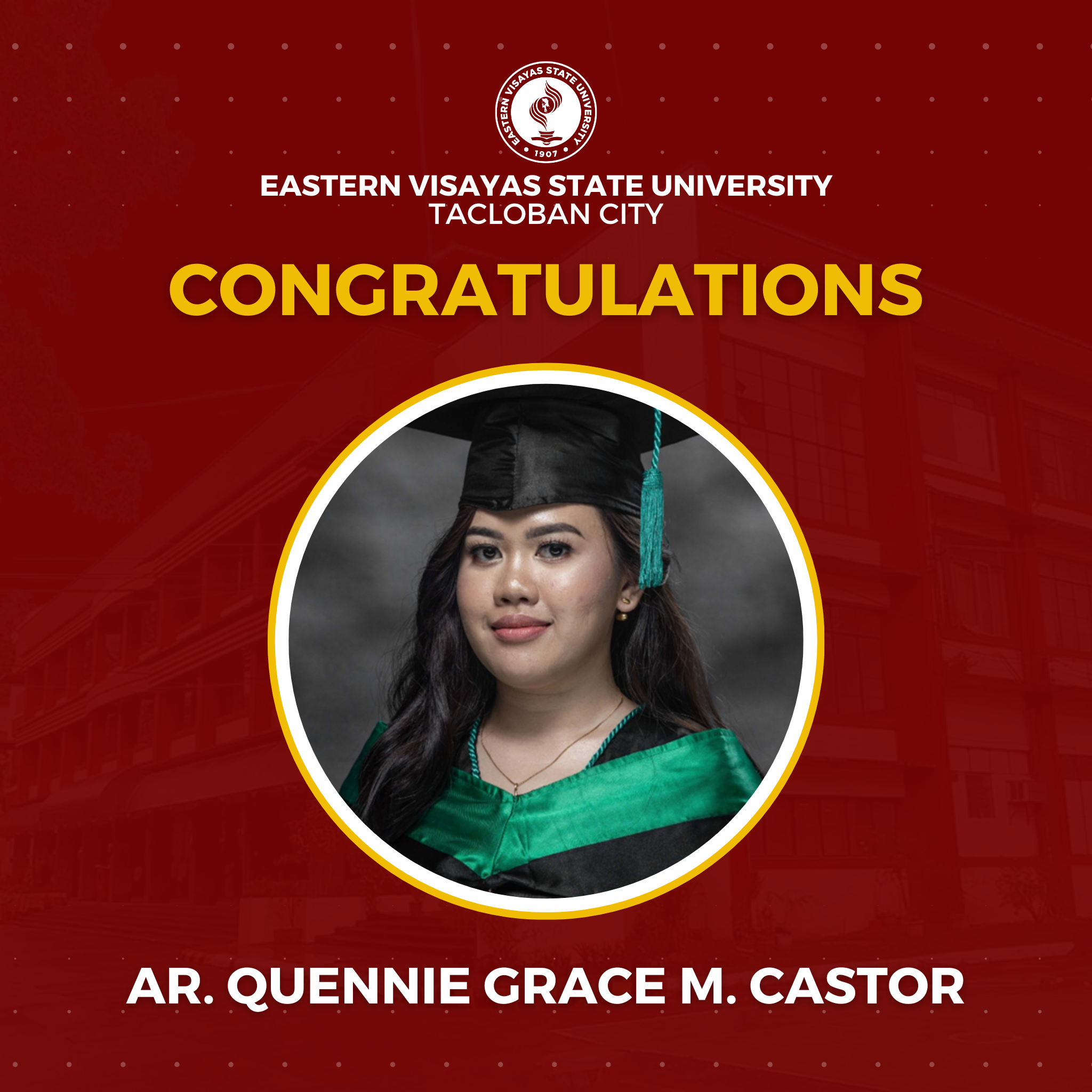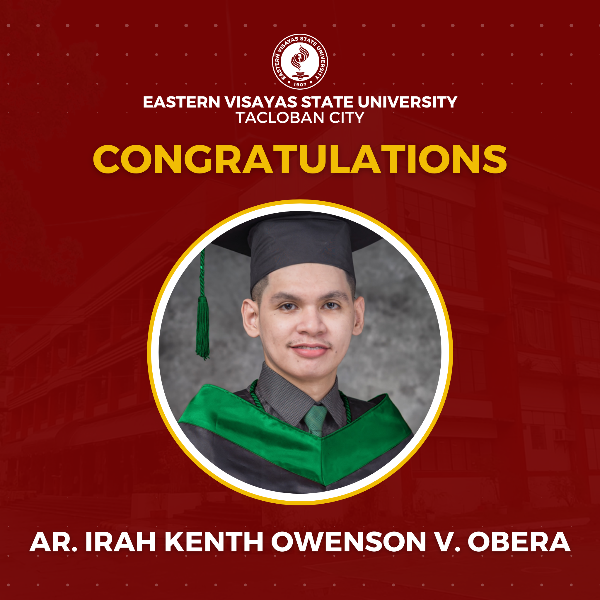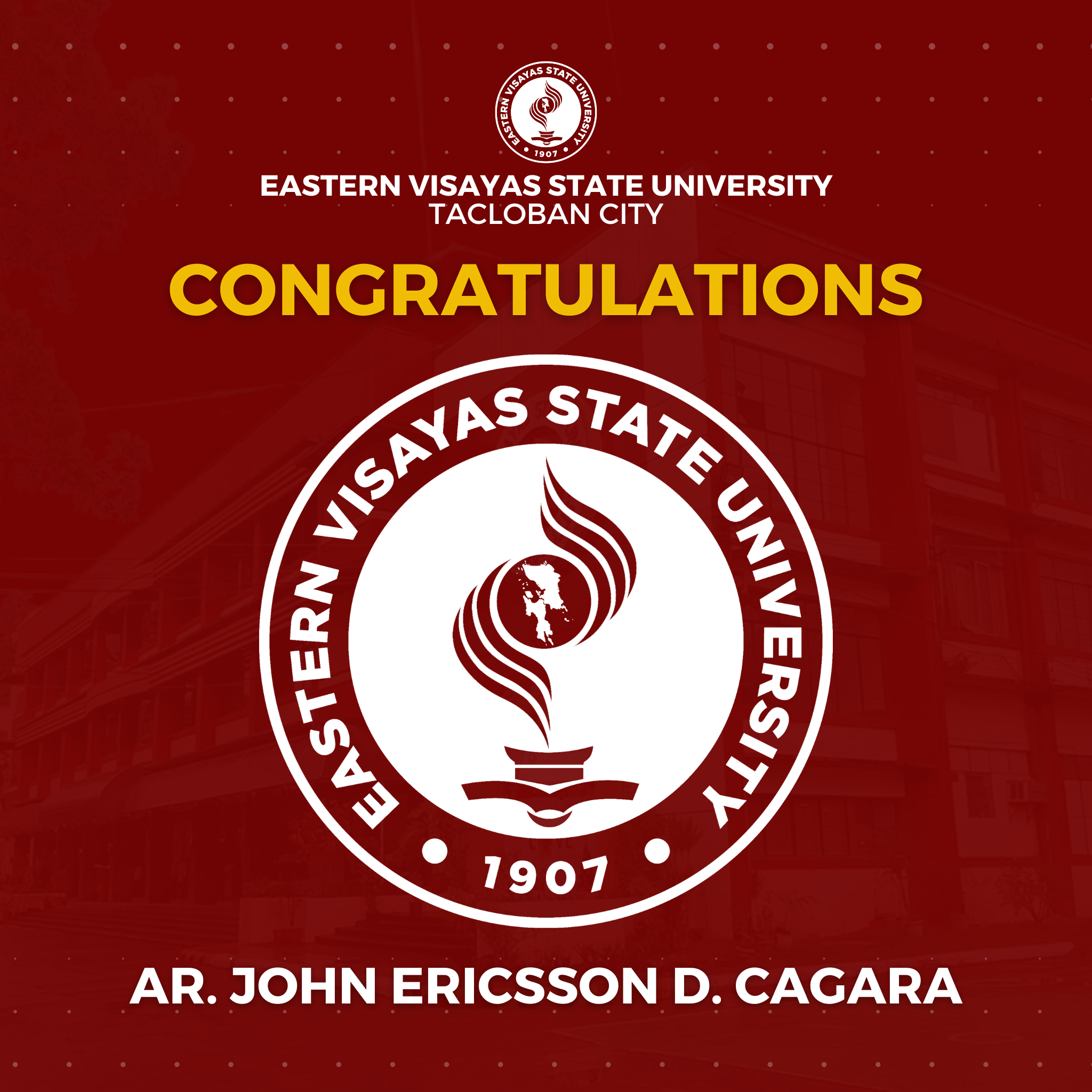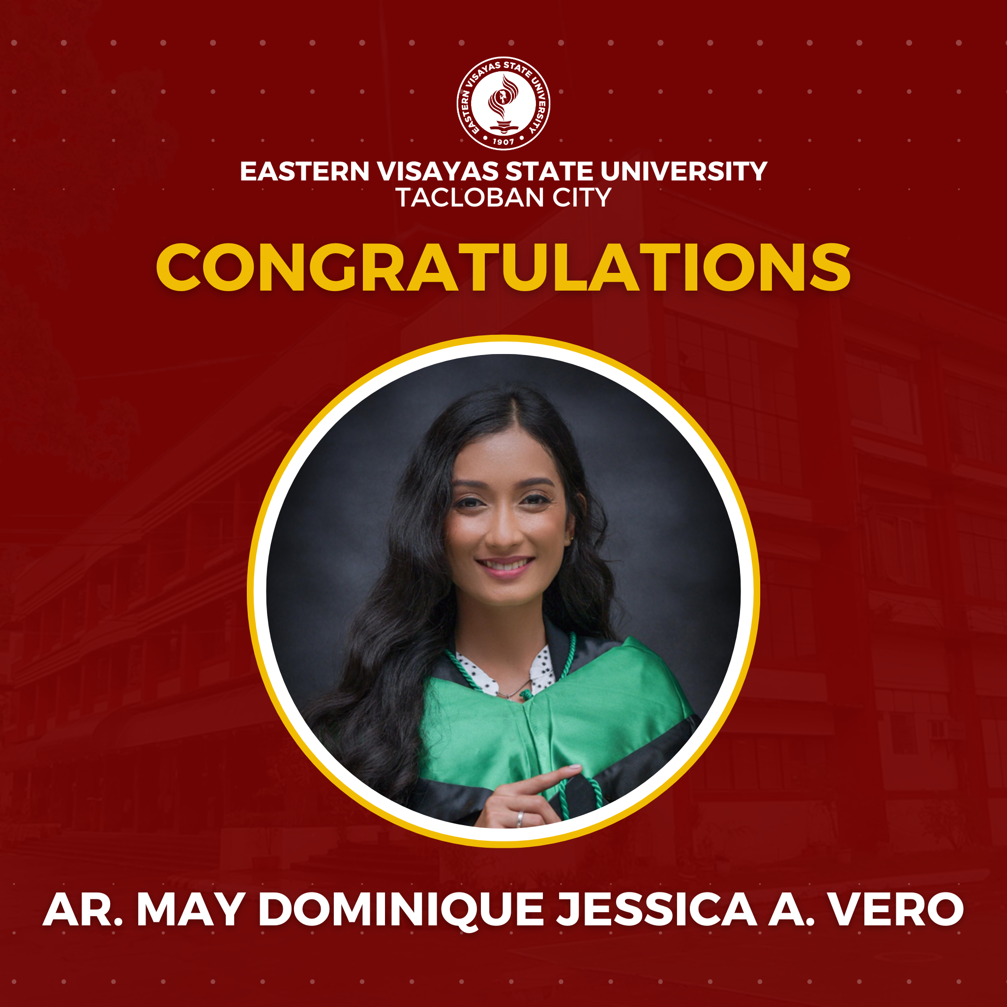 The Eastern Visayas State University (EVSU) has proudly produced 14 new architects in the January 2026 Architect Licensure Examination (ALE). The university reported a 63.84% passing rate: with a 91.67% passing rate for first time takers (11 passers) and 30.00% passing rate for repeaters (3 passers).