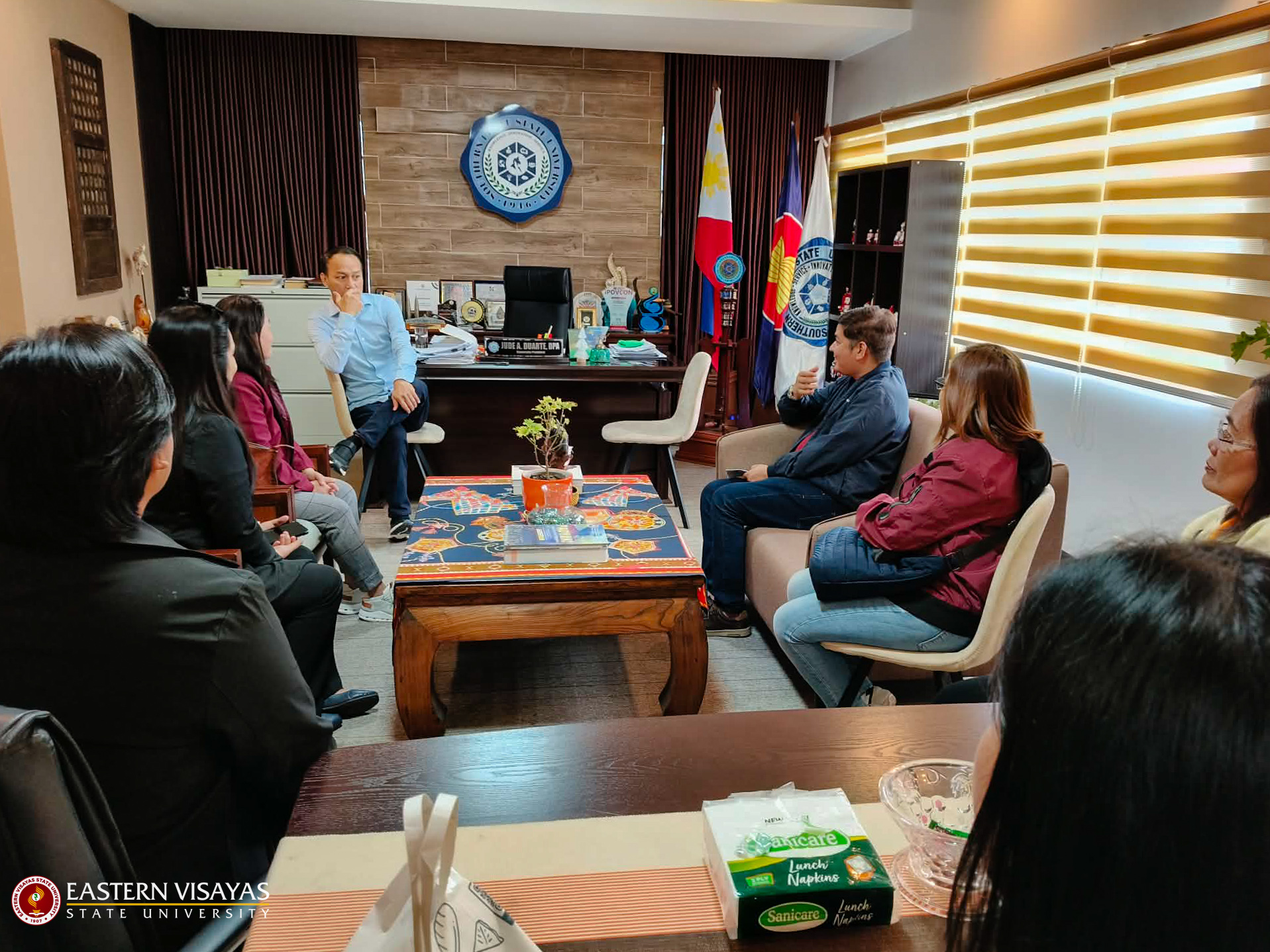 Eastern Visayas State University (EVSU) conducted a benchmarking visit to Southern Leyte State University (SLSU), beginning with a courtesy call with University President Dr. Jude A. Duarte. The activity is part of EVSU’s ongoing efforts to enhance institutional strategies and align its sustainability initiatives with global standards.