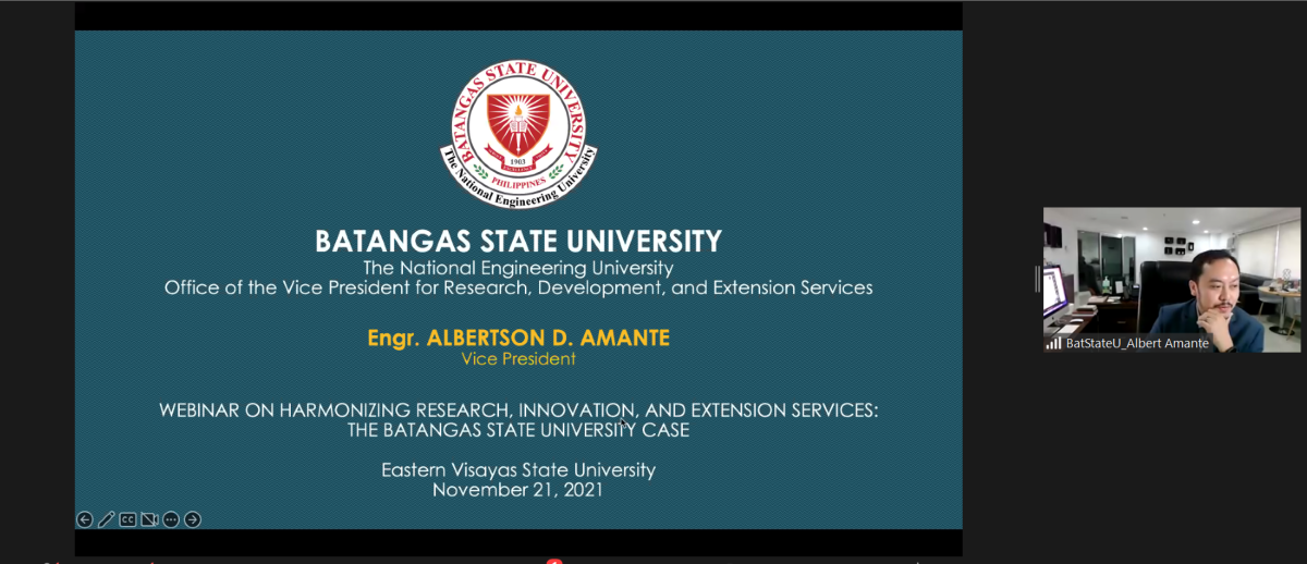 The Office of the Extension Services of Eastern Visayas State University hosted a Webinar on Harmonizing Research, Innovation, and Extension Services in State Universities and Colleges as a response to the need of translating knowledge into community-based engagements and activities and transform society through extension program on November 21, via zoom.