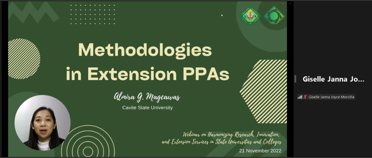 Dr Mira Magcawas of Cavite State University and Dr. Angeline Pogoy shared valuable inputs in relation to Methodologies in Extension PPAs and Best Practices in Extension PPAs in State Universities and Colleges.