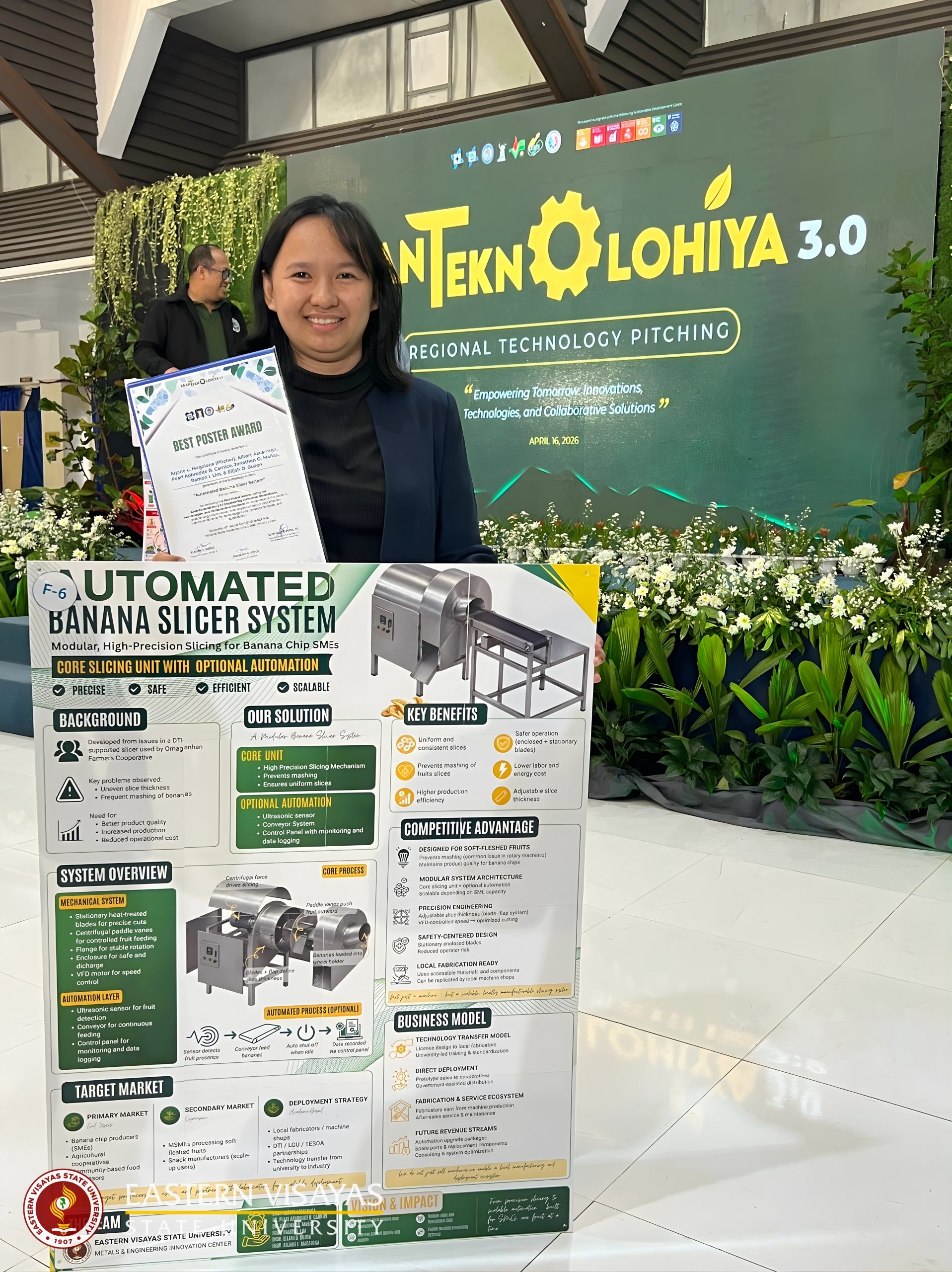 Eastern Visayas State University (EVSU) demonstrates its strong commitment to innovation and research excellence as its faculty and students garnered awards during the AbanTeknolohiya 3.0: 2nd Regional Industry-Academe Fireside Chat & Technology Pitching held on April 15–16, 2026 at the Visayas State University.